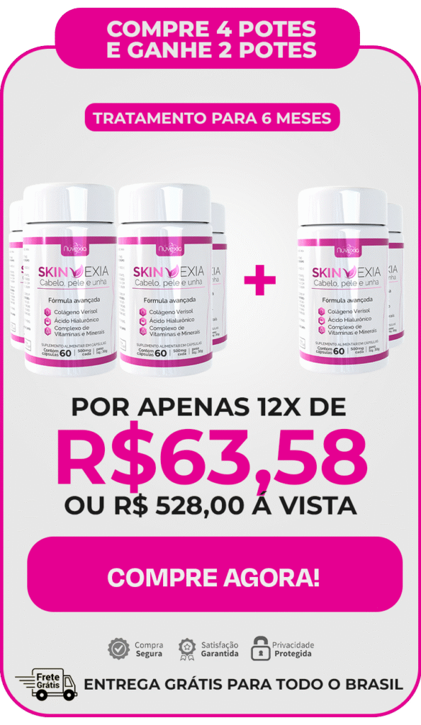 Desenvolvido por especialistas em saúde capilar, SKINVEXIA é um suplemento 100% natural que age onde outros produtos nâo chegam: na raiz da sua beleza.